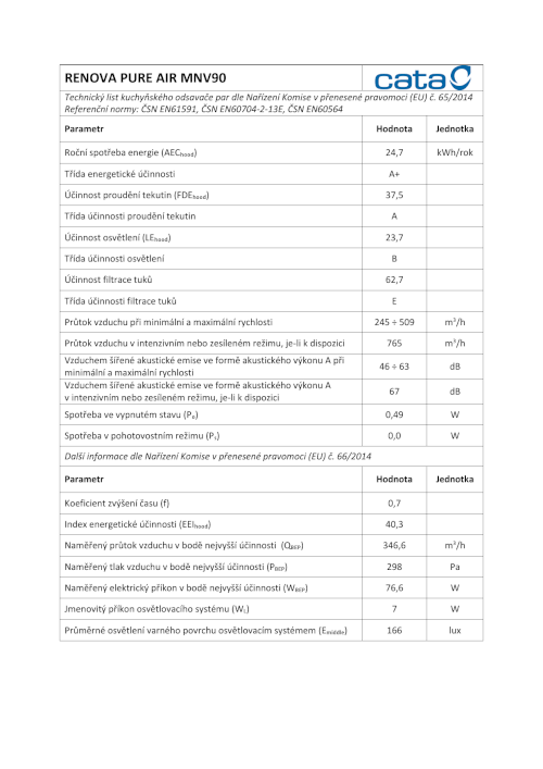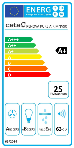 RENOVA PURE AIR MNV 90 GWH – vestavná recirkulační digestoř je unikátním řešením na trhu domácího odsávání a filtrace vzduchu. Kombinuje funkce extrémně výkonné a přesto tiché kuchyňské digestoře s čističkou vzduchu o sacím výkonu motoru 1200 m3/h v režimu TURBO. Výkon samotné digestoře je pak dle norem EU: 509 m3/h resp. 765 m3/h v režimu TURBO.