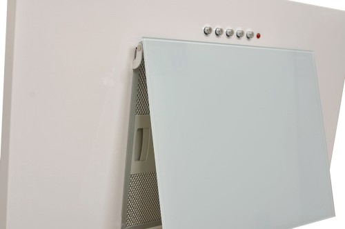 Komínová digestoř ke zdi, šíře 60 cm, bílá / bílé sklo, max. výkon 326 m³/h (15 Pa), hlučnost Lw 56 – 70 dB(A), 3 rychlosti, odsávací jednotky mají individuálně vyvažovanou turbínu, motory jsou opatřené vratnými tepelnými pojistkami (při přetížení motoru vypne, po jeho vychladnutí opět sepne), mechanické tlačítkové ovládání, kovové sendvičové tukové filtry, které lze mýt v myčce, možnost práce v odtahovém i recirkulačním režimu, výstupní průměr 120 mm, Výbava: úsporné LED osvětlení 2 × 2 W, Benefity: šikmá digestoř zvětšuje manipulační prostor nad varnou deskou a výrazně omezuje riziko bouchnutí se do hlavy o digestoř, šikmá digestoř může být instalovaná o 10-15 cm níž, než digestoře s rovnou spodní částí (snazší dostupnost ovládacích prvku i pro osoby menšího vzrůstu)