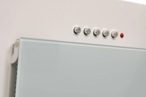 Korpus a velký šikmý panel je z bíle lakovaného plechu / Středový (menší) panel je z mléčně bílého skla |