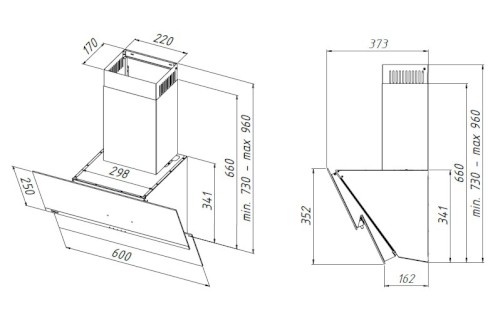 Komínová digestoř ke zdi, šíře 60 cm, černá / černé sklo, max. výkon 410 m³/h (5 Pa), hlučnost Lw 48 – 69 dB(A), 3 rychlosti, odsávací jednotky mají individuálně vyvažovanou turbínu, motory jsou opatřené vratnými tepelnými pojistkami (při přetížení motoru vypne, po jeho vychladnutí opět sepne), mechanické tlačítkové ovládání, kovové sendvičové tukové filtry, které lze mýt v myčce, možnost práce v odtahovém i recirkulačním režimu, výstupní průměr 150 mm, Výbava: úsporné LED osvětlení 2 × 2 W, zdarma redukce na 120 mm a zpětná klapka, Benefity: šikmá digestoř zvětšuje manipulační prostor nad varnou deskou a výrazně omezuje riziko bouchnutí se do hlavy o digestoř, šikmá digestoř může být instalovaná o 10-15 cm níž, než digestoře s rovnou spodní částí (snazší dostupnost ovládacích prvku i pro osoby menšího vzrůstu)