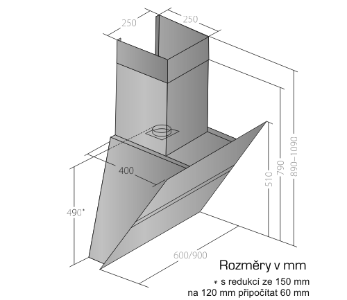 Maximální výkon 822 m³/h (5 Pa) - hlučnost Lw při max. výkonu je 69 dB(A) - odsávací jednotky mají individuálně vyvažovanou turbínu - motory jsou opatřené vratnými tepelnými pojistkami (při přetížení motoru vypne, po jeho vychladnutí opět sepne) - elektronické senzorové ovládání s LED displejem - dálkové ovládání – zdarma dálkový ovladač i s bateriemi - nastavitelný časovač v rozsahu 10 až 60 minut - indikace nutnosti vyčištění tukových filtrů a výměny uhlíkových filtrů - kovové sendvičové tukové filtry, které lze mýt v myčce - výstupní průměr 150 mm – zdarma přiložena redukce 150 mm / 120 mm a zpětná klapka - možnost práce v odtahovém i v recirkulačním režimu