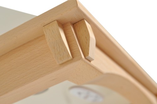 Rustikální komínová digestoř, šíře 60 cm, bílá / nemořená buková lišta, max. výkon 405 m³/h (5 Pa), hlučnost Lw 51 – 61 dB(A), 3 rychlosti, odsávací jednotky mají individuálně vyvažovanou turbínu, motory jsou opatřené vratnými tepelnými pojistkami (při přetížení motoru vypne, po jeho vychladnutí opět sepne), mechanické posuvné ovládání, kovové sendvičové tukové filtry, které lze mýt v myčce, možnost práce v odtahovém i recirkulačním režimu, výstupní průměr 150 mm, Výbava: úsporné LED osvětlení 2 × 2 W, zdarma redukce na 120 mm a zpětná klapka, Benefity: nemořená dřevěná lišta umožňuje individuální barevné doladění třeba podle materiálu kuchyně