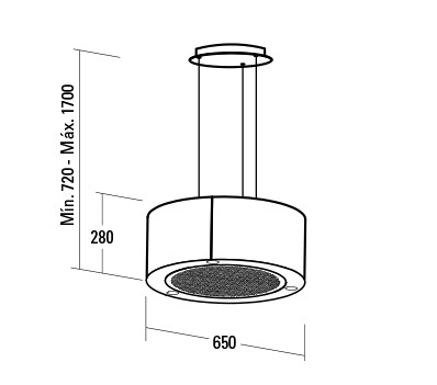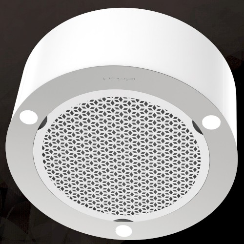 Ostrůvková lustrová digestoř, šíře 65 cm, nerez/bílá, max. výkon 645 m³/h (5 Pa), hlučnost Lw 48 – 63 dB(A), 3 rychlosti, kovové sendvičové tukové filtry, které lze mýt v myčce, v myčce lze mýt i uhlíkový pachový filtr, digestoř určená pro provoz v recirkulačním režimu, úsporné LED osvětlení 3 × 3,5 W, elektronické tlačítkové ovládání s doběhovým časovačem