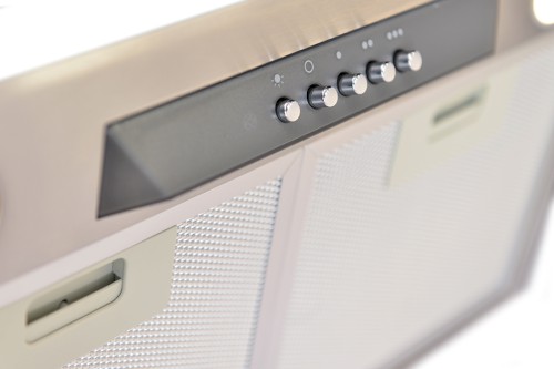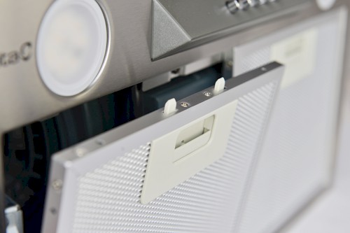 Vestavná, 450 mm (do 600 mm skříňky), nerez, 1 motor BT2 200 W, 3 rychlosti, 600 m3/h (5 Pa), max. hlučnost Lw 65 dB(A), max. tlak 405 Pa.