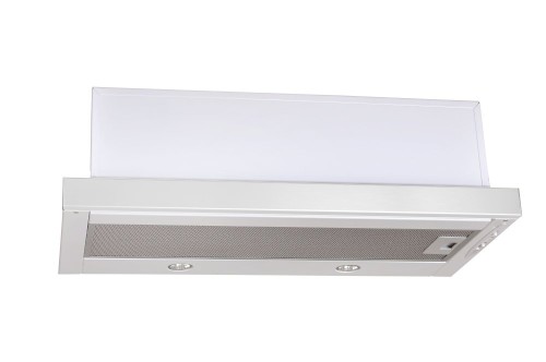 Vestavná digestoř výsuvná, šíře 60 cm, bílá s bílou lištou, max. výkon 338 m³/h (15 Pa), hlučnost Lw 56 – 71 dB(A), 3 rychlosti, odsávací jednotky mají individuálně vyvažovanou turbínu, motory jsou opatřené vratnými tepelnými pojistkami (při přetížení motoru vypne, po jeho vychladnutí opět sepne), mechanické posuvné ovládání, kovové sendvičové tukové filtry, které lze mýt v myčce, možnost práce v odtahovém i recirkulačním režimu, Výbava: úsporné LED osvětlení 2 × 2 W, zdarma zpětná klapka