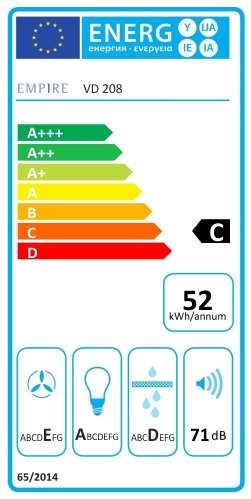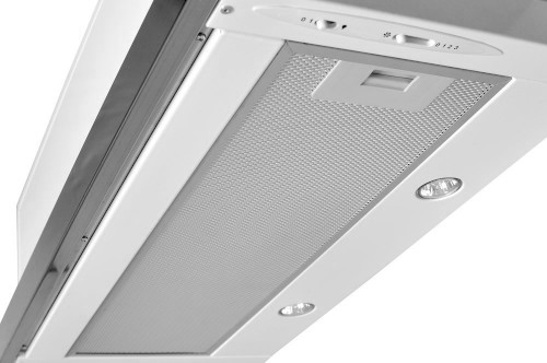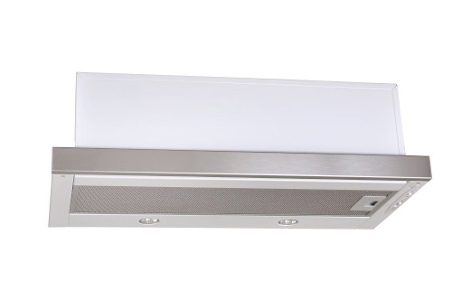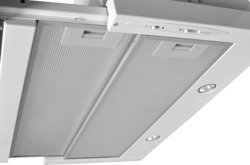 Vestavná digestoř výsuvná, šíře 60 cm, bílá s nerez lištou, max. výkon 338 m³/h (15 Pa), hlučnost Lw 56 – 71 dB(A), 3 rychlosti, odsávací jednotky mají individuálně vyvažovanou turbínu, motory jsou opatřené vratnými tepelnými pojistkami (při přetížení motoru vypne, po jeho vychladnutí opět sepne), mechanické posuvné ovládání, kovové sendvičové tukové filtry, které lze mýt v myčce, možnost práce v odtahovém i recirkulačním režimu, Výbava: úsporné LED osvětlení 2 × 2 W, zdarma zpětná klapka