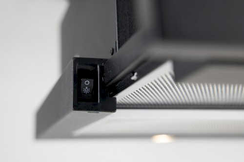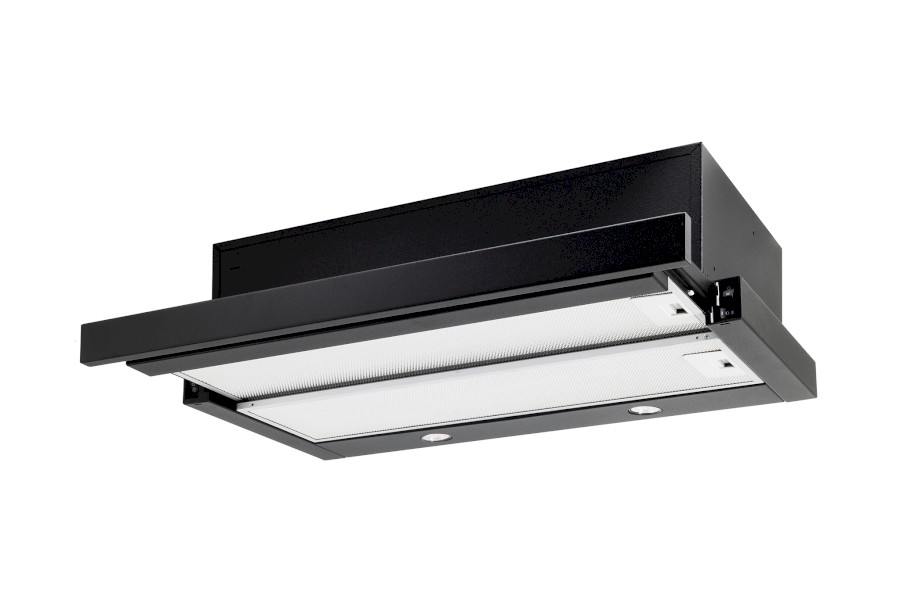 Vestavná digestoř výsuvná, šíře 60 cm, černá s černou lištou, max. výkon 338 m³/h (15 Pa), hlučnost Lw 56 – 71 dB(A), 3 rychlosti, odsávací jednotky mají individuálně vyvažovanou turbínu, motory jsou opatřené vratnými tepelnými pojistkami (při přetížení motoru vypne, po jeho vychladnutí opět sepne), mechanické kolébkové ovládání (skryté za lištou), kovové sendvičové tukové filtry, které lze mýt v myčce, možnost práce v odtahovém i recirkulačním režimu, Výbava: úsporné LED osvětlení 2 × 2 W, zdarma zpětná klapka