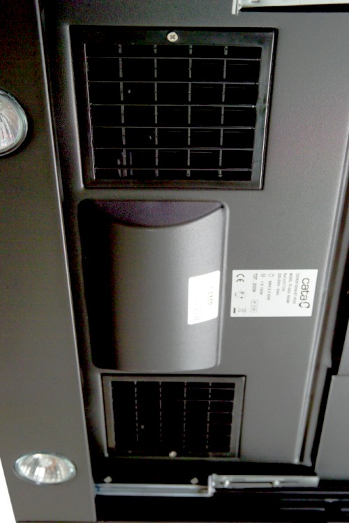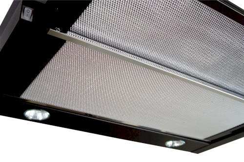 Vestavná výsuvná, 600 mm, černá s černým sklem na čelní liště, 1 motor 80 W, 2 rychlosti, 340 m3/h (15 Pa), max. tlak 194 Pa, max. hlučnost Lw 57 dB.