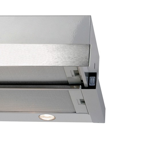 Vestavná výsuvná, 600 mm, nerez lišta s povrchem DurAlum, 1 motor 80 W, 2 rychlosti, 340 m3/h (15 Pa), max. tlak 194 Pa, max. hlučnost Lw 55 dB.