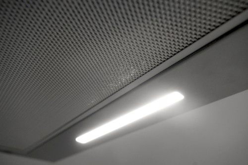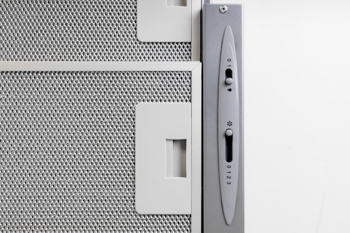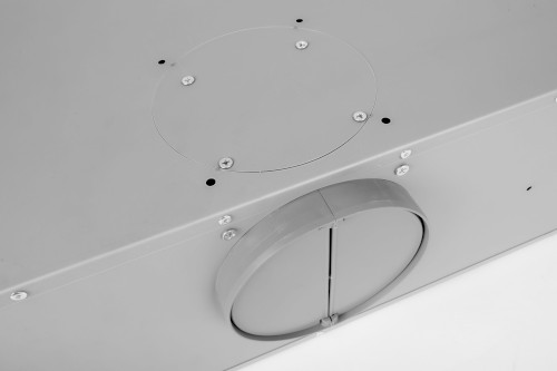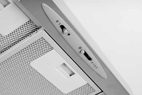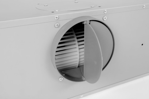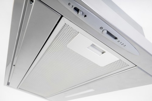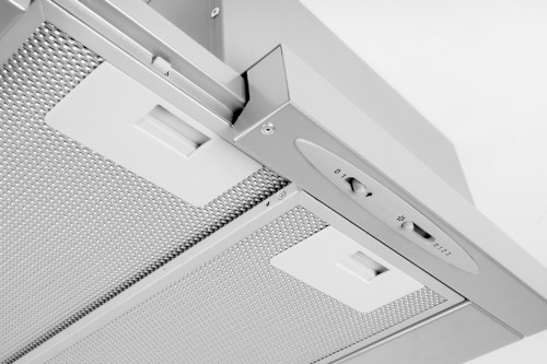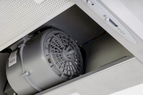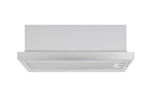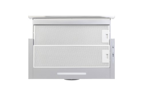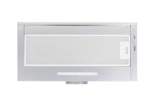 Vestavná digestoř výsuvná, jediná na trhu s odtahem dozadu nebo nahoru (oba 120 mm), šíře 50 cm, bílá s nerez lištou, max. výkon 338 m³/h (15 Pa), hlučnost Lw 56 – 71 dB(A), 3 rychlosti, odsávací jednotky mají individuálně vyvažovanou turbínu, motory jsou opatřené vratnými tepelnými pojistkami (při přetížení motoru vypne, po jeho vychladnutí opět sepne), mechanické posuvné ovládání, kovové sendvičové tukové filtry, které lze mýt v myčce, možnost práce v odtahovém i recirkulačním režimu, Výbava: úsporné LED osvětlení 1 × 2,8 W (LED pásek), zdarma zpětná klapka