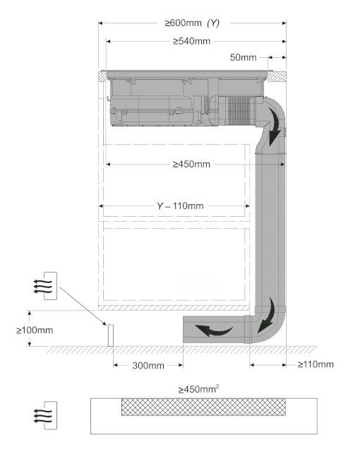 Kompletní sada potrubí k indukčním deskám s integrovanou digestoří typu flow-in