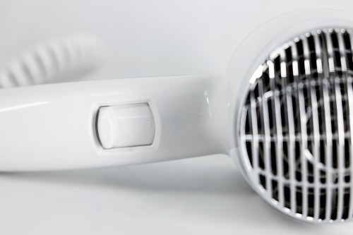 Hotelový fén s montáží na zeď, 3 rychlosti, 220 V - 240 V / 50 - 60 Hz, příkon 1.800 W, přepínač rychlostí a spouštěcí tlačítko na rukojeti, hlavní vypínač na stojánku, materiál ABS, bezpečnost CLASS II, dvojitá izolace, rozměry 220 mm výška × 250 mm šířka × 140 mm hloubka, hmotnost 0,82 kg