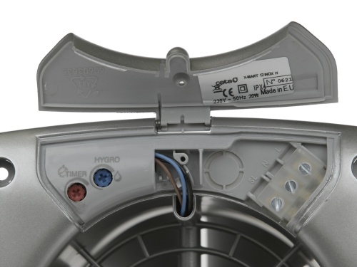 Axiální ventilátor na zeď, do stropu či do okna X-MART, supertichý, super design, snadné čištění, pr. 120 mm, 190 m³/h, 42 dB(A), 5 mmH2O (49 Pa), IPX4, snímač vlhkosti s funkcí doběhu, nerez čelní deska!