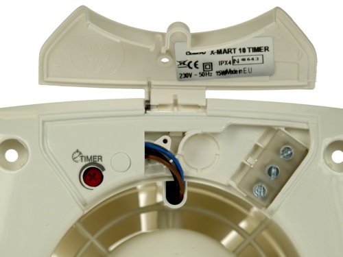 Axiální ventilátor na zeď, do stropu či do okna X-MART, supertichý, super design, snadné čištění, pr. 120 mm, 190 m³/h, 42 dB(A), 5 mmH2O (49 Pa), IPX4, doběhový časovač