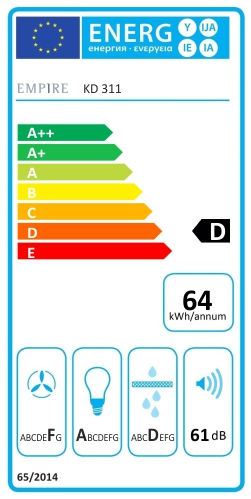 Komínová digestoř ke zdi, šíře 90 cm, nerez, max. výkon 405 m³/h (5 Pa), hlučnost Lw 51 – 61 dB(A), 3 rychlosti, odsávací jednotky mají individuálně vyvažovanou turbínu, motory jsou opatřené vratnými tepelnými pojistkami (při přetížení motoru vypne, po jeho vychladnutí opět sepne), mechanické tlačítkové ovládání, kovové sendvičové tukové filtry, které lze mýt v myčce, možnost práce v odtahovém i recirkulačním režimu, výstupní průměr 150 mm, Výbava: úsporné LED osvětlení 2 × 2 W, zdarma redukce na 120 mm a zpětná klapka