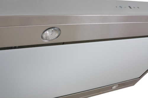 Ostrůvková digestoř, šíře 90 cm, nerez / bílé sklo, max. výkon 822 m³/h (5 Pa), hlučnost Lw 51 – 69 dB(A), 3 rychlosti + TURBO, odsávací jednotky mají individuálně vyvažovanou turbínu, motory jsou opatřené vratnými tepelnými pojistkami (při přetížení motoru vypne, po jeho vychladnutí opět sepne), kovové sendvičové tukové filtry, které lze mýt v myčce, výstupní průměr 150 mm, možnost práce v odtahovém i recirkulačním režimu, VIP výbava: úsporné LED osvětlení 4 × 2 W, elektronické dotykové ovládání s doběhovým časovačem, zdarma dálkový ovladač i s bateriemi, zdarma redukce na 120 mm a zpětná klapka, Benefity: používání dálkového ovládání usnadňuje údržbu digestoře (méně otisků na digestoři = snazší čištění), ovladač je opatřený magnetem, lze jej přichytit třeba na dveře lednice (může být snadno po ruce, nikam nezapadne)