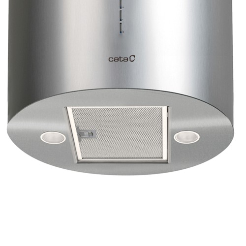 Komínová ostrůvková, 40 cm, nerez, ovládání VL3 s modře prosvětlenými tlačítky, 1 motor BT3 280 W, 3 rychlosti, 800 m3/h (5 Pa), max. hlučnost Lw 67 dB(A), max. tlak 470 Pa, 15 min. časovač, LED světla, válcový tvar