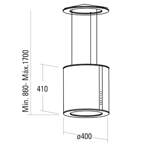 Ostrůvková lustrová digestoř, šíře 40 cm, nerez/bílé sklo, max. výkon 645 m³/h (5 Pa), hlučnost Lw 48 – 63 dB(A), 3 rychlosti, kovové sendvičové tukové filtry, které lze mýt v myčce, v myčce lze mýt i uhlíkový pachový filtr, digestoř určená pro provoz v recirkulačním režimu, úsporné LED osvětlení 3 × 3,5 W s regulací jasu, dotykové ovládání TC3V s doběhovým časovačem