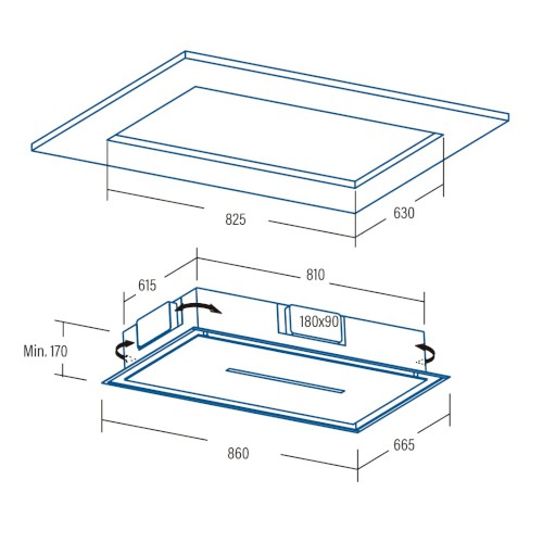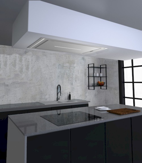 Stropní digestoř, šíře 90 cm, nerez, max. výkon 620 m³/h (5 Pa), hlučnost Lw 50 – 67 dB(A), 3 rychlosti + TURBO, kovové sendvičové tukové filtry, které lze mýt v myčce, výstupní průměr 180 × 90 mm, možnost práce v odtahovém režimu nebo recirkulačním režimu (při recirkulaci je potřeba přefiltrovaný vzduch vést potrubím k vhodnému místu výdechu zpět do místnosti), úsporné LED osvětlení (LED pásek) 7 W s regulací jasu a volbou teploty bílého světla, elektronické dálkové ovládání, zdarma dálkový ovladač i s bateriemi, zdarma přiloženy montážní konzole, Benefity: stropní digestoř je skrytá ve stropním podhledu a dává tak vyniknout ostatnímu vybavení kuchyně, výdechové hrdlo lze nastavit do 4 směrů, SLIM provedení – nízký profil jen 17 cm.