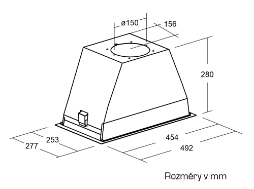 Pro výrobu skříňky je směrodatný rozměrový nákres a údaje v něm uvedené. Fotografie digestoří jsou ilustrační.