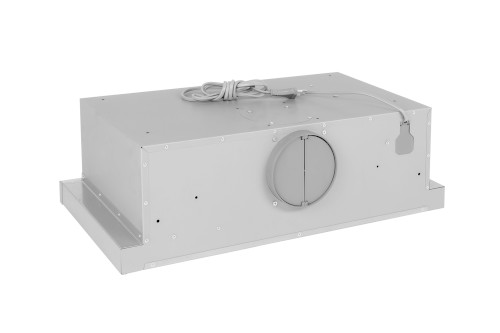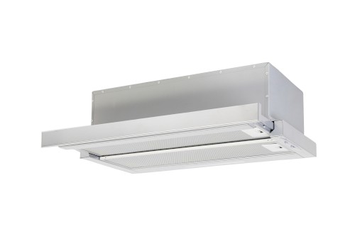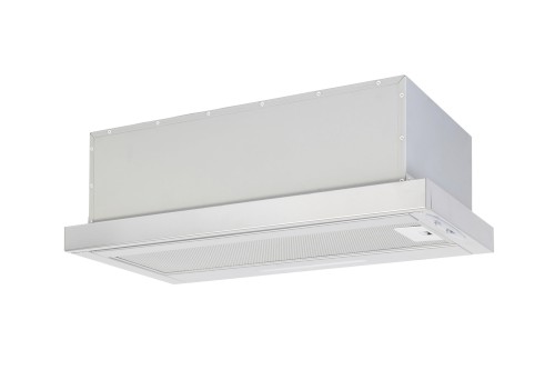 Vestavná digestoř výsuvná, jediná na trhu s odtahem dozadu nebo nahoru (oba 120 mm), šíře 50 cm, bílá s nerez lištou, max. výkon 338 m³/h (15 Pa), hlučnost Lw 56 – 71 dB(A), 3 rychlosti, odsávací jednotky mají individuálně vyvažovanou turbínu, motory jsou opatřené vratnými tepelnými pojistkami (při přetížení motoru vypne, po jeho vychladnutí opět sepne), mechanické posuvné ovládání, kovové sendvičové tukové filtry, které lze mýt v myčce, možnost práce v odtahovém i recirkulačním režimu, Výbava: úsporné LED osvětlení 1 × 2,8 W (LED pásek), zdarma zpětná klapka