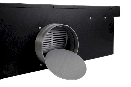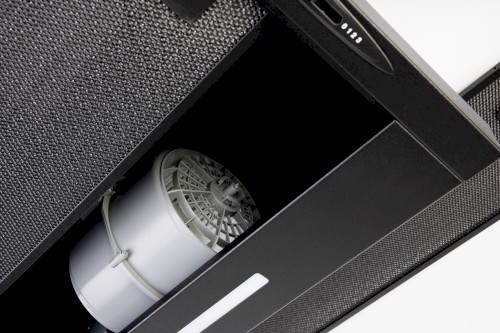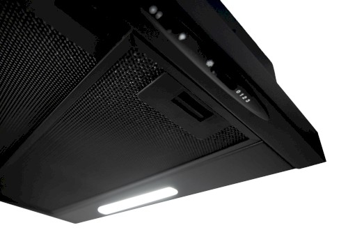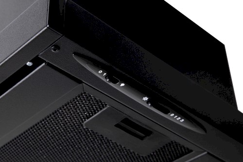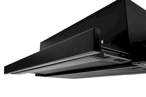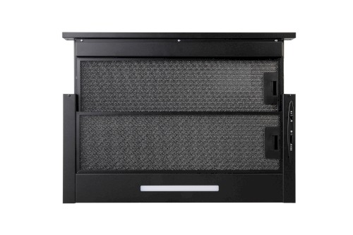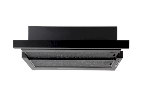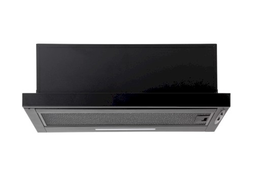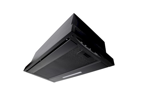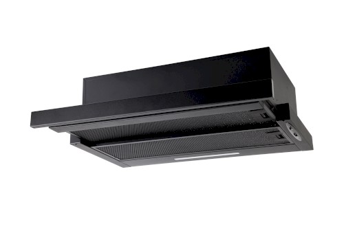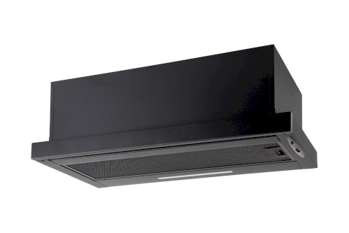 Vestavná digestoř výsuvná, jediná na trhu s odtahem dozadu nebo nahoru (oba 120 mm), šíře 60 cm, černá, max. výkon 338 m³/h (15 Pa), hlučnost Lw 56 – 71 dB(A), 3 rychlosti, odsávací jednotky mají individuálně vyvažovanou turbínu, motory jsou opatřené vratnými tepelnými pojistkami (při přetížení motoru vypne, po jeho vychladnutí opět sepne), mechanické posuvné ovládání, kovové sendvičové tukové filtry, které lze mýt v myčce, možnost práce v odtahovém i recirkulačním režimu, Výbava: úsporné LED osvětlení 1 × 2,8 W (LED pásek), zdarma zpětná klapka